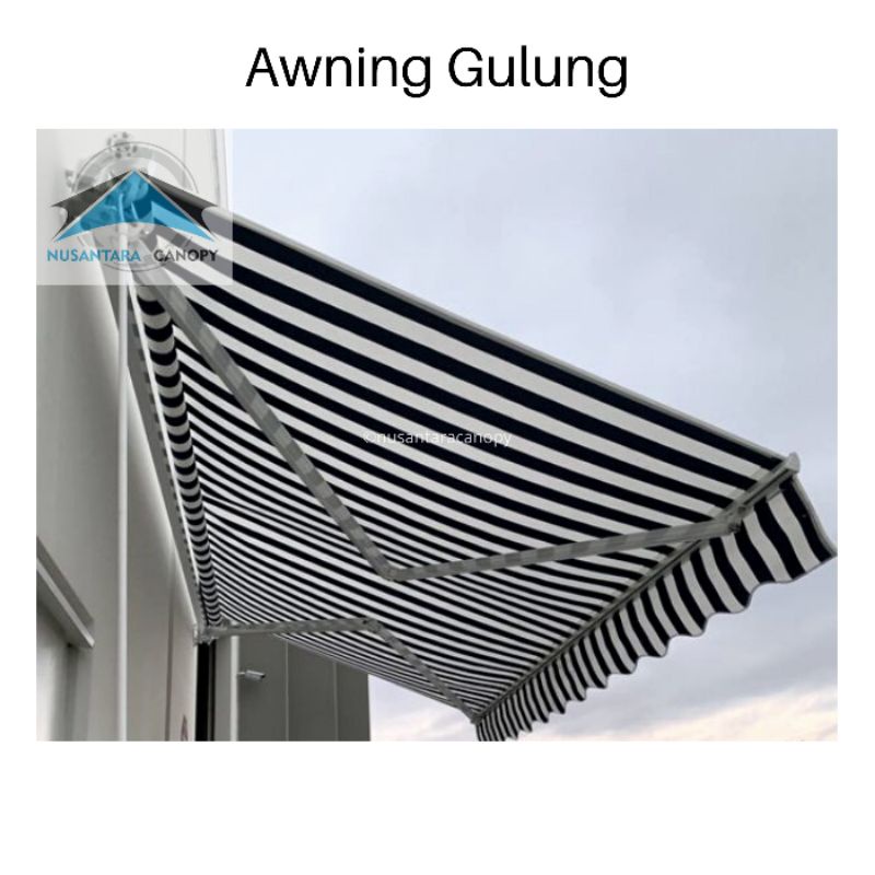 Pemasangan awning gulung dapat memberikan kesan klasik dan juga moderen pada bangunan anda, jenis canopy lipat atau awning gulung ini sangat cocok dipasang pada jendela atau teras rumah, selain itu pada area komersil seperti pertokoan. awning gulung merupakan istilah yang sering digunakan oleh banyak orang untuk menyebut canopy kain yang dapat menutup atau menggulung secara otomatis dan telah dilengkapi dengan motor elektrik juga remote control.kegunaannya ialah untuk menutup atau menggulung kain canopy pada awning gulung dari jarak jauh. Ada dua jenis gulungan tenda yang saat ini diproduksi, yaitu manual roll tenda dan gulungan auto awning. awning gulung merupakan jenis canopy yang di gulung dan praktis penggunaanya , ketika panas atau hujan bisa di bentangkan dan anda bisa gulung kapanpun anda mau. Jadi jika anda ingin melakukan pembuatan kanopi lipat awning gulung dengan panjang lebih dari 4 meter anda tidak akan bias kecuali lebar nya, jikalau lebar nya.